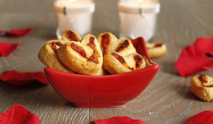 Corazones de hojaldre con tomate picante